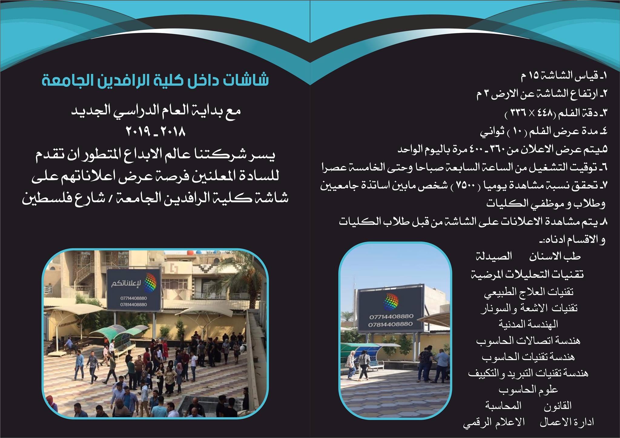 Announces Alam Alebdaa Wa Altatawer Company of advertising in the screens inside the Faculty of Rafidain University College to inquire contact on
