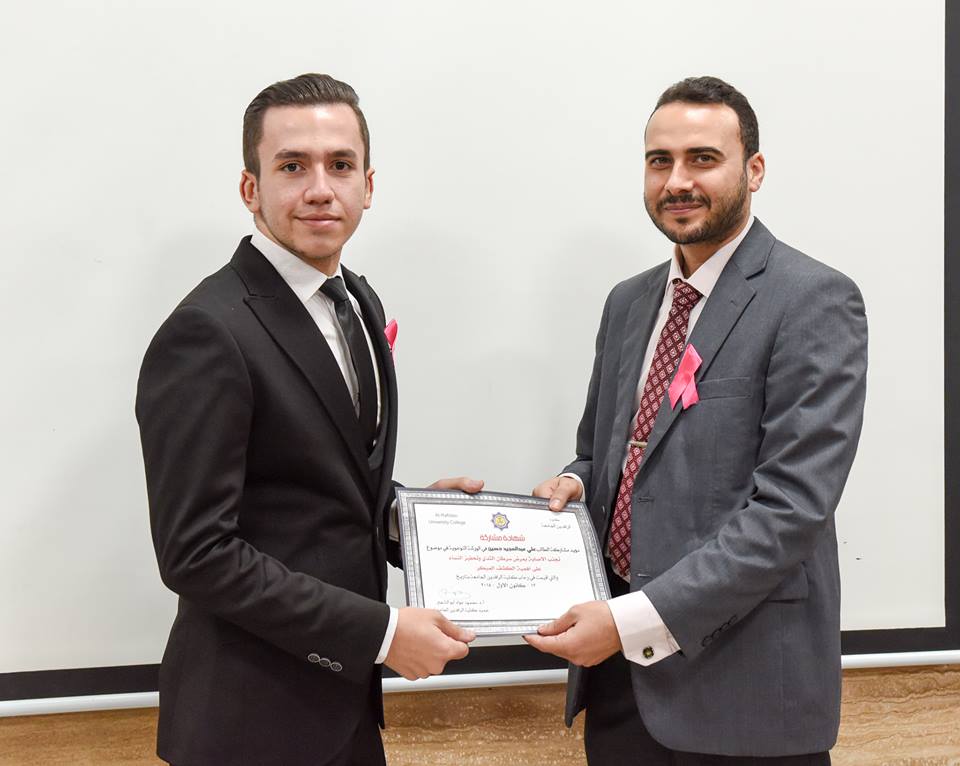 Department of (Dentistry) ,has organized an workshop with “Salon Baghdad Al-Wardy” on incorporeal support and psychological qualifying of cancer fighters to spread early detection of breast cancer culture and organizing awareness events to help women. (RUC) has endured the national, scientific and humanitarian responsibility to collaborate with civil society organizations for healthy community. The workshop held at (RUC) involved detailed explanation on this awareness project.